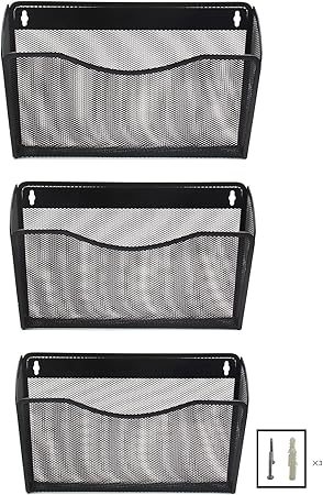 Maxgear mesh file holder wall organizer 3 pockets hanging file organizers wall mounted paper organizer holders wall bins for office and home, black.